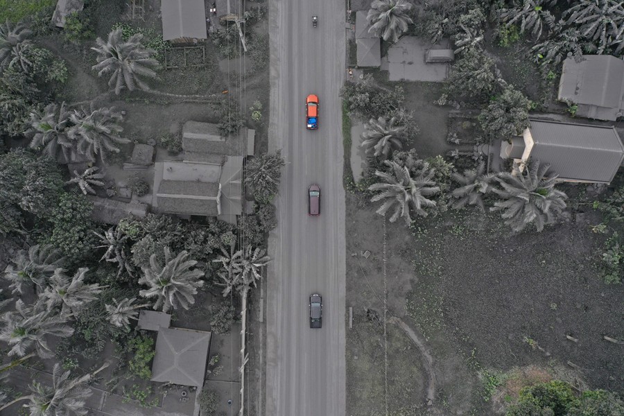 6月5日,菲律賓索索貢省的一個(gè)城鎮(zhèn)被布盧桑火山噴發(fā)的火山灰覆蓋(無(wú)人機(jī)照片)。