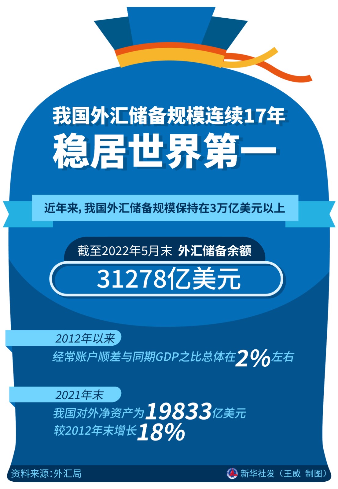 近年來,我國(guó)外匯儲(chǔ)備規(guī)模保持在3萬億美元以上,今年5月末超3.1萬億美元,連續(xù)17年穩(wěn)居世界第一,是維護(hù)國(guó)家經(jīng)濟(jì)金融安全重要的“穩(wěn)定器”和“壓艙石”。