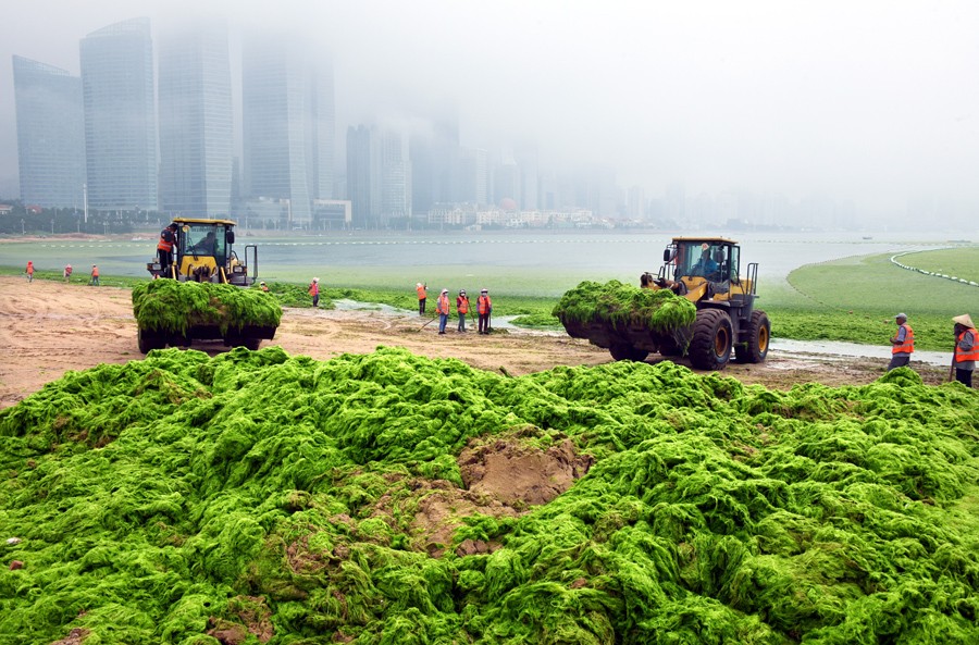 近期,隨著海水溫度逐漸升高,山東省青島市海岸線的滸苔有所增加。當(dāng)前,青島市已啟動“近岸海域滸苔應(yīng)急處置”預(yù)案,積極組織市政、環(huán)衛(wèi)、漁業(yè)等部門,通過“海上打撈、近岸阻攔、岸域清理”的方式進(jìn)行處置。