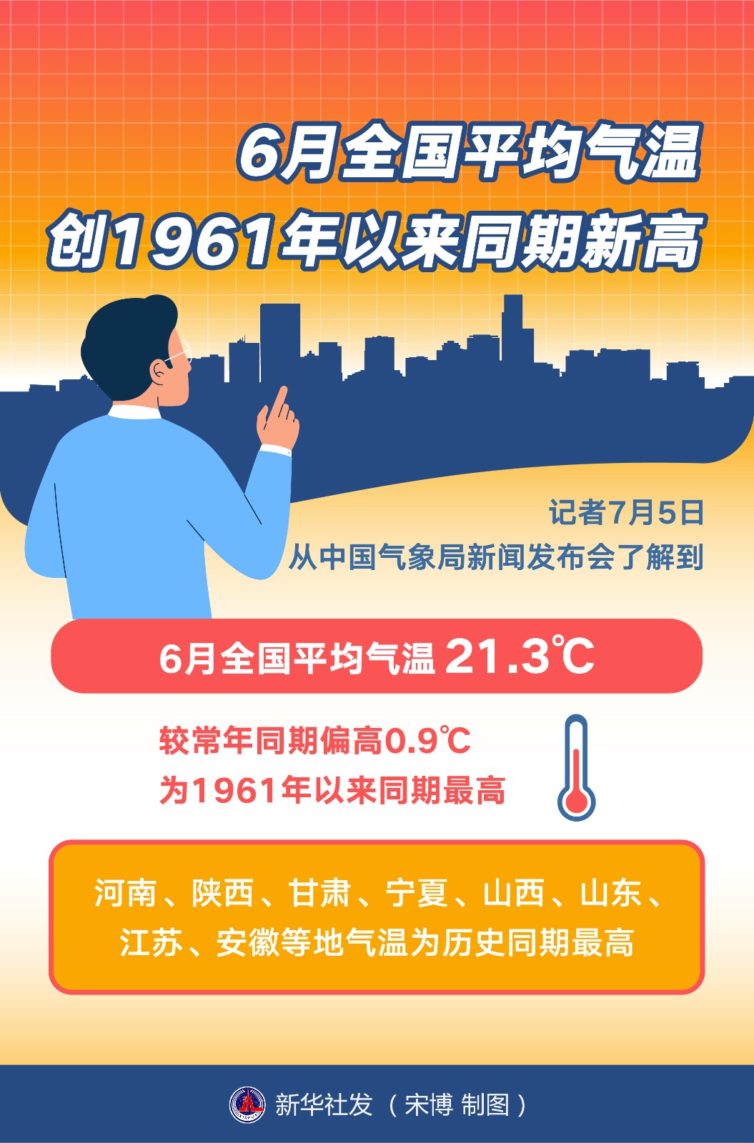 記者7月5日從中國氣象局新聞發(fā)布會了解到,6月全國平均氣溫21.3℃,較常年同期偏高0.9℃,為1961年以來同期最高。