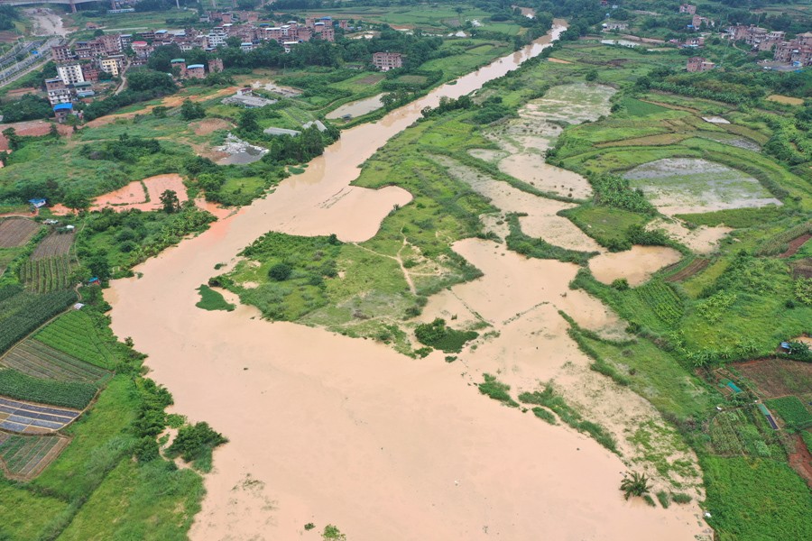這是7月4日拍攝的廣西南寧市那平江水位上漲情況(無人機(jī)照片)。