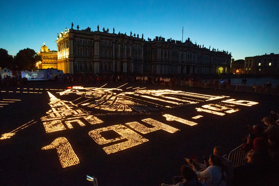 6月22日凌晨,人們在俄羅斯圣彼得堡冬宮廣場點燃蠟燭,紀念衛(wèi)國戰(zhàn)爭爆發(fā)81周年。
