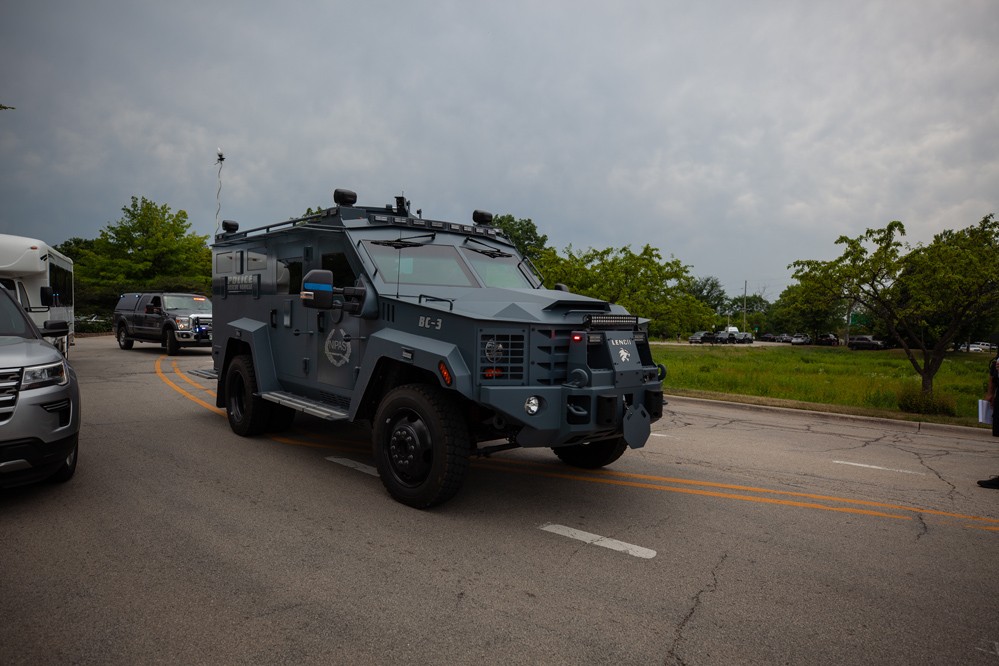 7月4日,一輛警車開往美國伊利諾伊州海蘭帕克市的槍擊現(xiàn)場。
