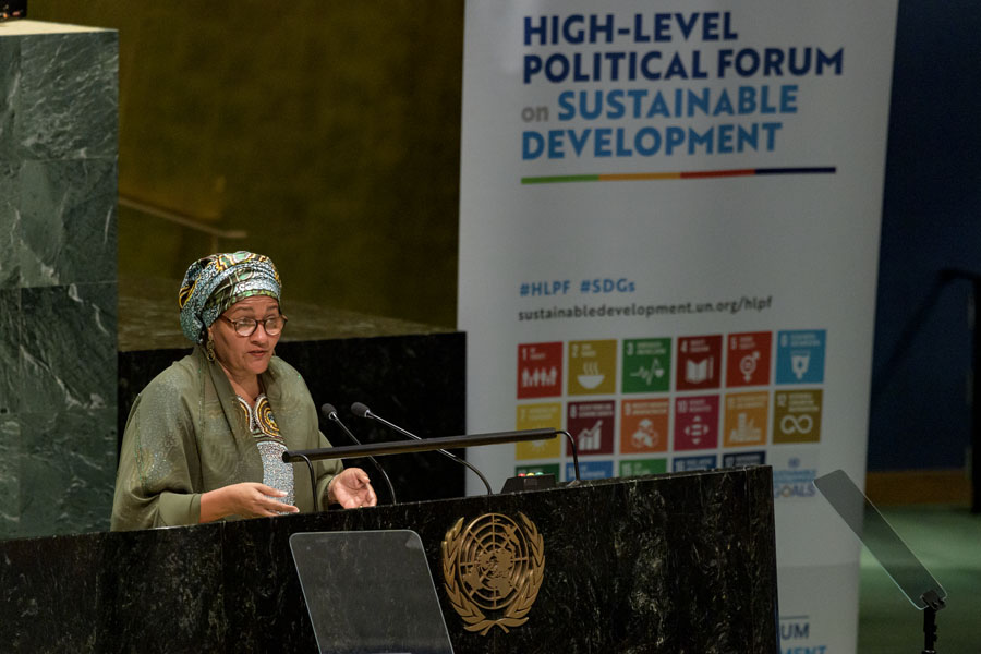 7月5日,在位于紐約的聯(lián)合國總部,聯(lián)合國常務(wù)副秘書長阿明娜·穆罕默德在聯(lián)合國可持續(xù)發(fā)展高級別政治論壇上發(fā)言。