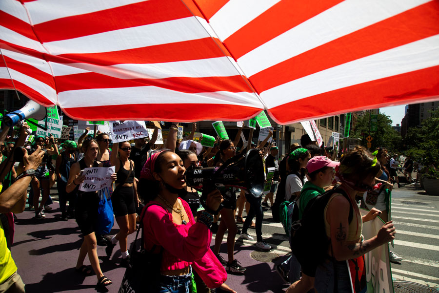 7月4日,墮胎權(quán)支持者在美國紐約舉行示威游行。