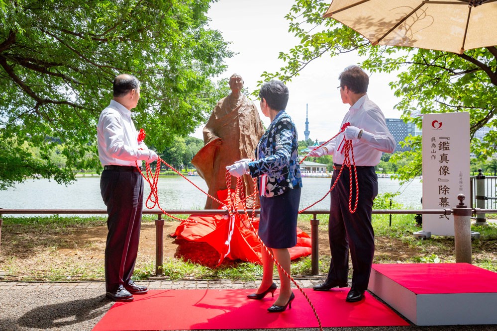 7月20日,在日本東京上野公園“不忍池”湖畔,中日嘉賓共同為鑒真銅像揭幕。