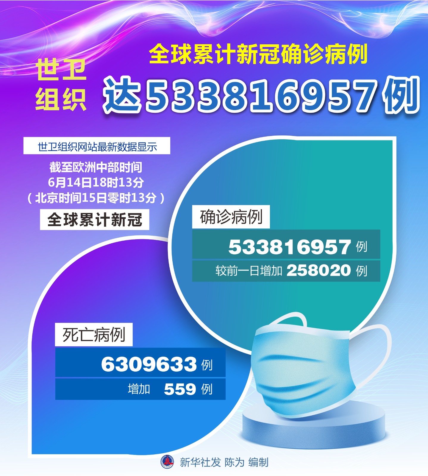 圖表:世衛(wèi)組織:全球累計新冠確診病例達(dá)533816957例
