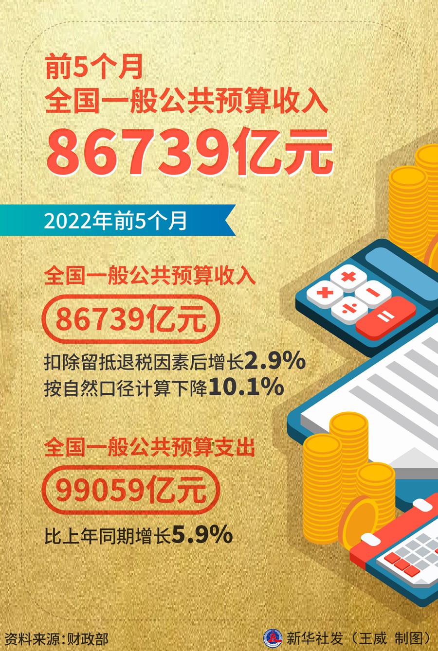 圖表:前5個(gè)月全國(guó)一般公共預(yù)算收入86739億元