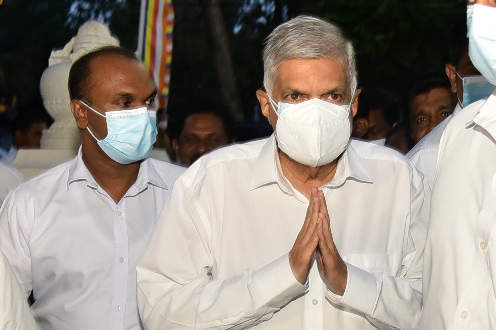 7月20日,在斯里蘭卡首都科倫坡,斯里蘭卡新當選總統(tǒng)維克拉馬辛哈(右)出席當?shù)氐囊粓龌顒印?/p>
