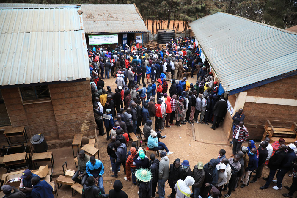 8月9日,人們在肯尼亞內(nèi)羅畢基貝拉貧民區(qū)一投票站排隊參加大選投票。
