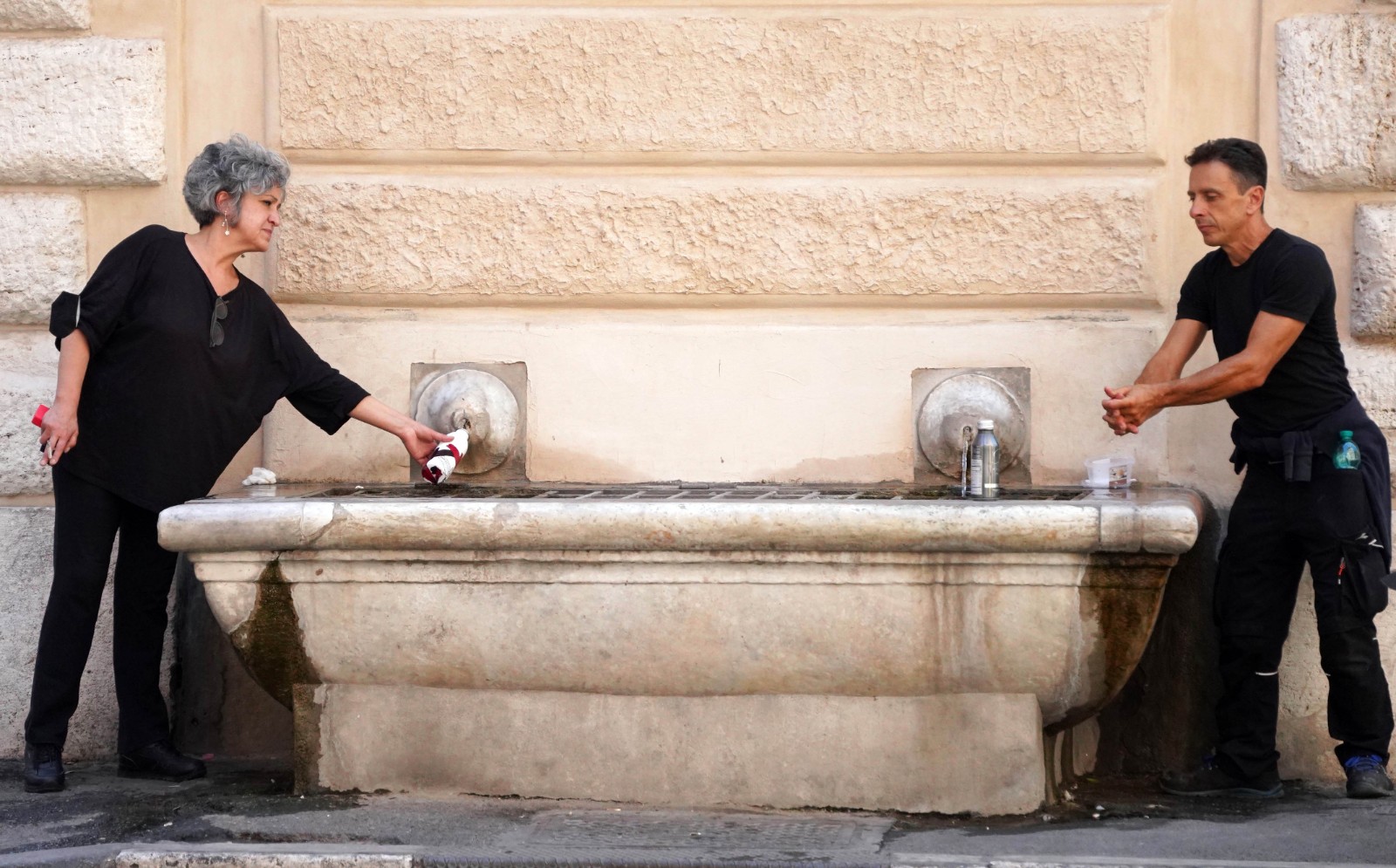 8月2日,人們?cè)谝獯罄_馬街頭接水。