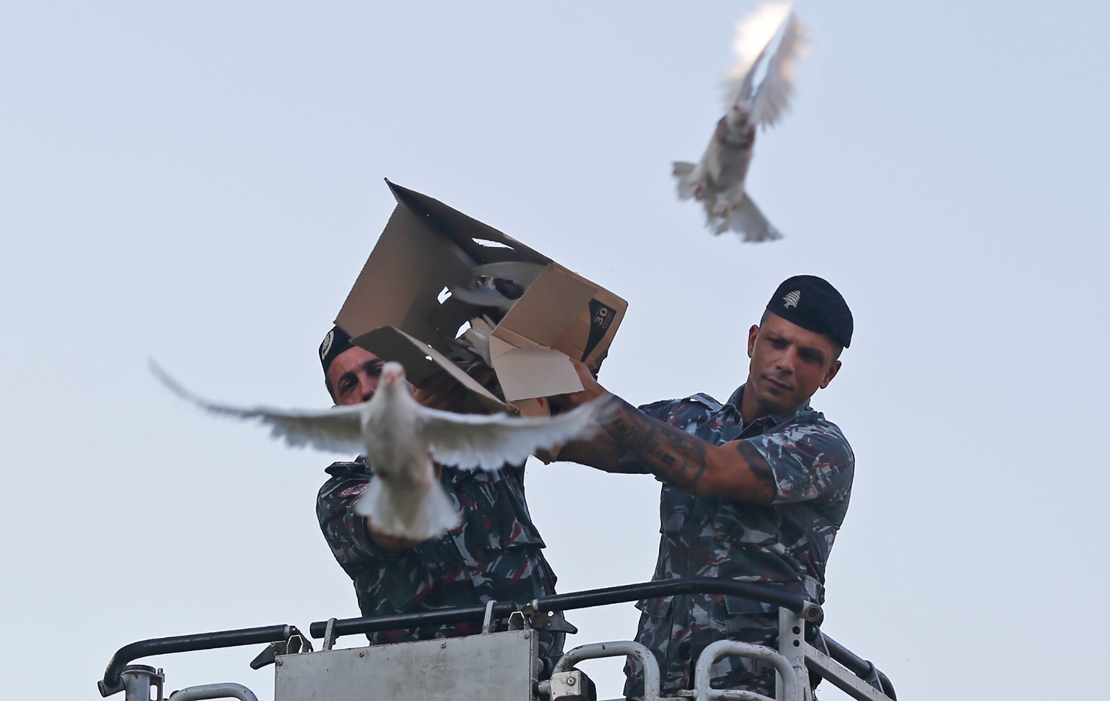8月3日,在黎巴嫩貝魯特,人們放飛白鴿,紀(jì)念貝魯特港口大爆炸中犧牲的消防人員。