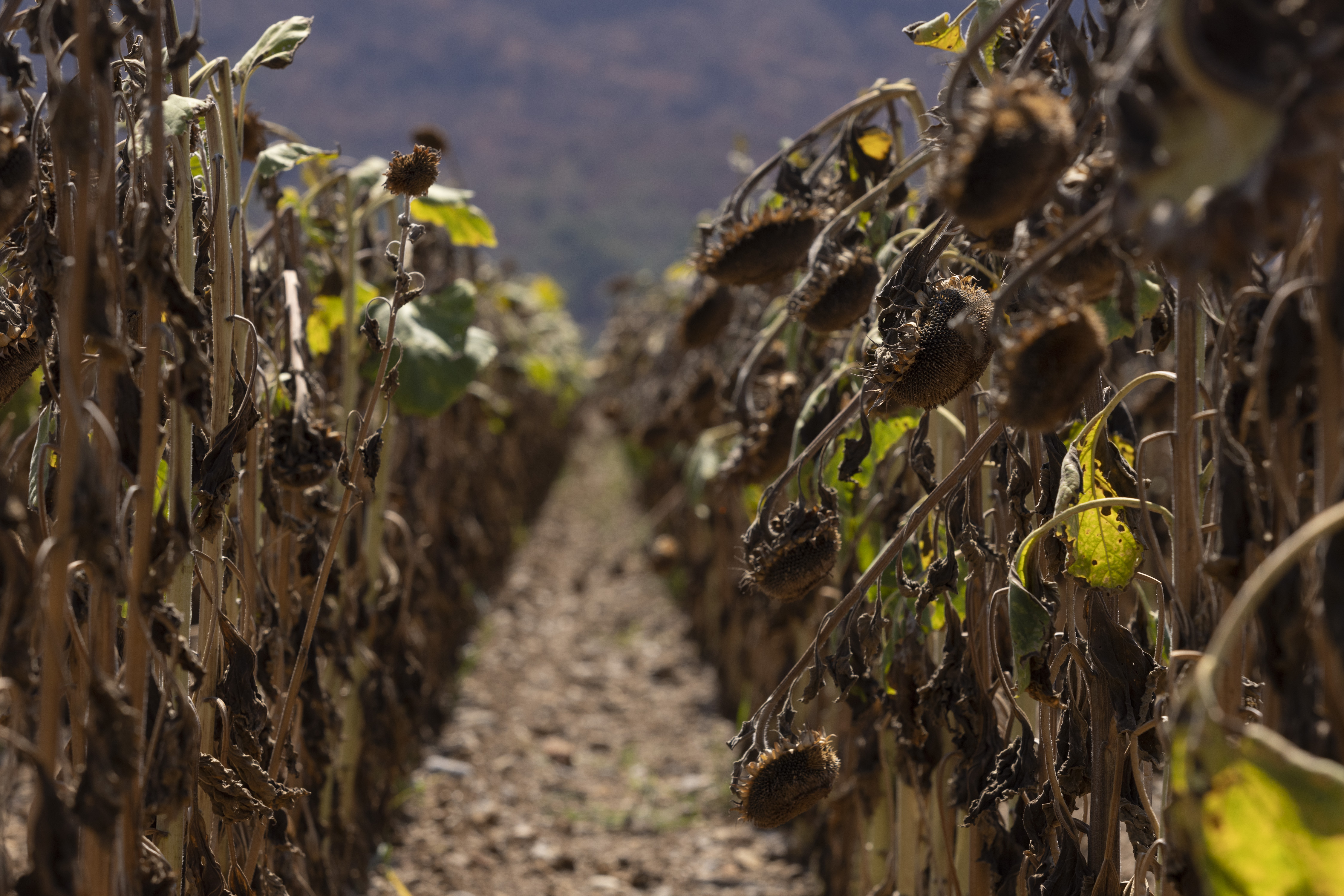 8月16日,在斯洛文尼亞戈里什卡區(qū)新戈里察市的喀斯特鎮(zhèn),向日葵因干旱枯萎。