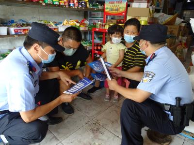 為加大防范網(wǎng)絡(luò)電信詐騙宣傳力度,安徽省蕪湖市公安局鏡湖分局各派出所成立“反詐宣傳”小分隊,民警深入商家、企業(yè)、社區(qū)開展“反詐宣傳進萬家,守護群眾錢袋子”主題宣教活動。圖為8月2日,民警向轄區(qū)群眾宣傳防范詐騙知識。