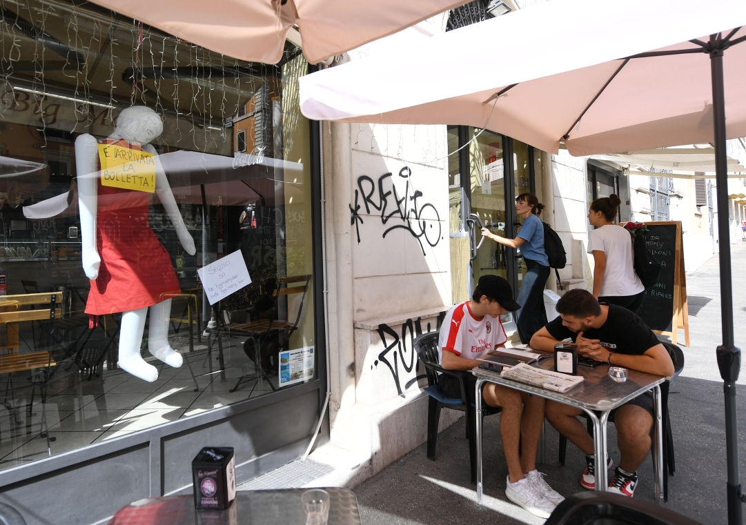 近日,意大利羅馬一家餐館的玻璃窗上懸掛著一個(gè)充氣人偶,它身前的紙牌上寫(xiě)著醒目的“賬單已到!”字樣,吸引著人們的目光。這家餐館的經(jīng)營(yíng)者勞拉·拉莫尼說(shuō),此舉的起因是餐館近期面臨的高額電費(fèi)賬單。今年6月和7月,餐館的電費(fèi)賬單共計(jì)約2600歐元,而去年同期約為900歐元。勞拉表示賬單令她不堪重負(fù),為了維持經(jīng)營(yíng),她不得不辭去兩名員工,上調(diào)部分商品價(jià)格,并申請(qǐng)分期支付賬單。