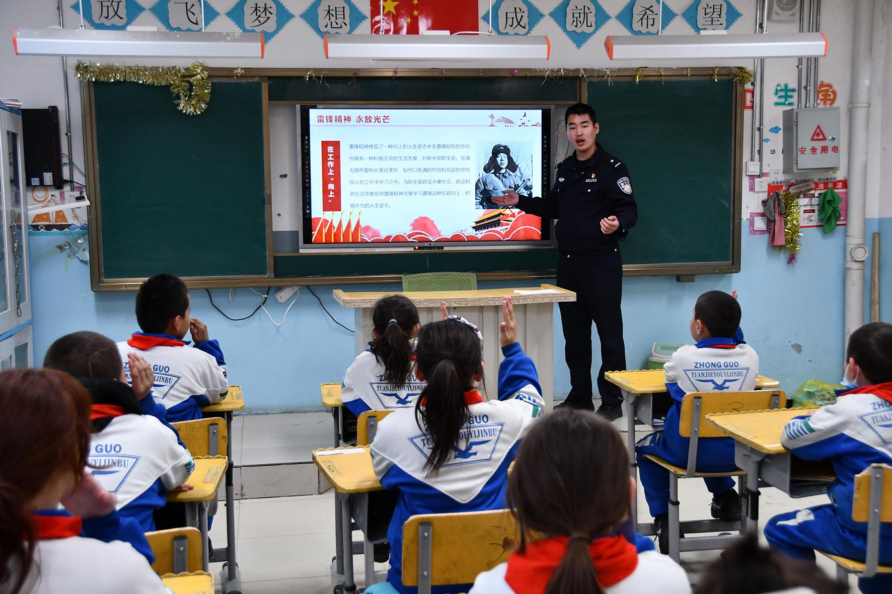 3月1日,甘肅省臨澤縣公安局民輔警走進(jìn)轄區(qū)幼兒園,向小朋友們講述雷鋒精神的時(shí)代內(nèi)涵和學(xué)習(xí)雷鋒精神的重要意義,讓雷鋒精神代代傳承。