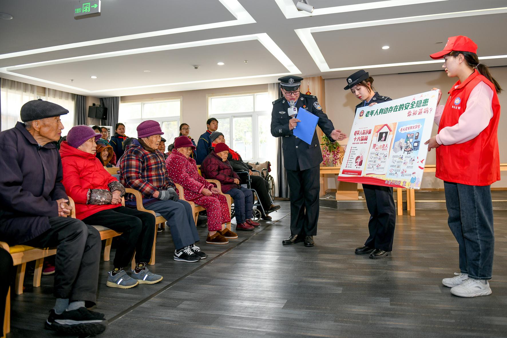 圖為民警通過“情景劇”的形式向老人開展養(yǎng)老反詐宣傳。