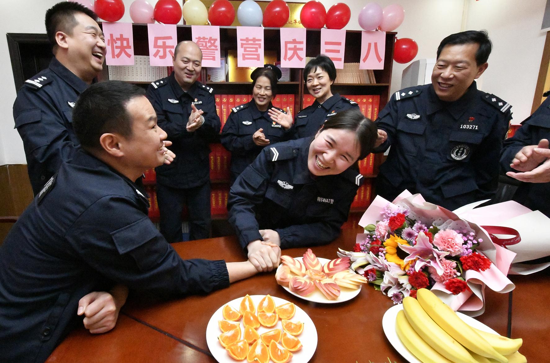 3月7日,河南省鄭州市公安局金水分局巡特警大隊(duì)舉辦“快樂警營慶三八”活動(dòng)。