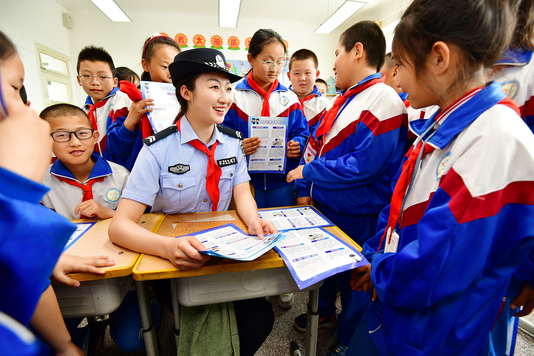 5月30日,河南省鄭州市公安局金水分局民警帶著禮物來(lái)到轄區(qū)河南省實(shí)驗(yàn)小學(xué),與同學(xué)們一起歡慶“六一”。