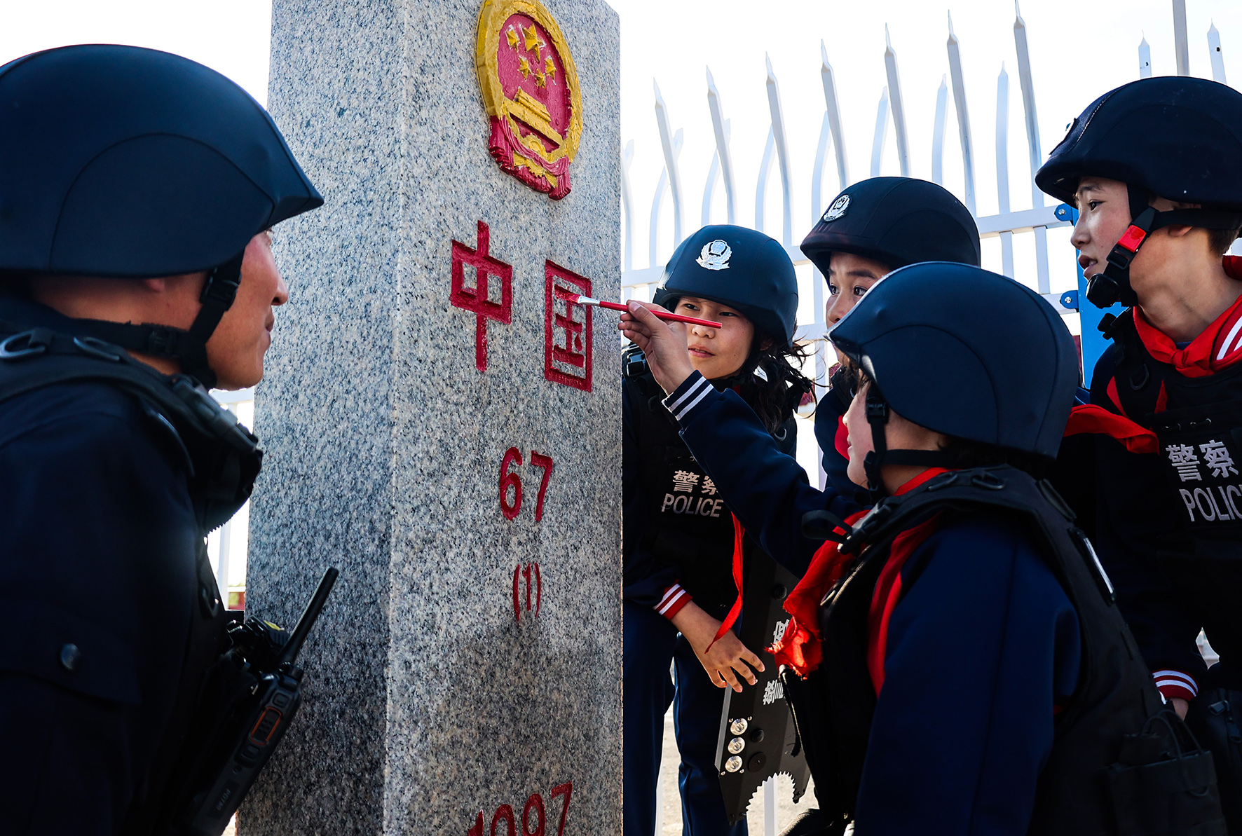 5月29日,新疆阿勒泰邊境管理支隊(duì)恰勒什海邊境派出所邀請(qǐng)駐地吉木乃鎮(zhèn)薩爾吾楞牧業(yè)寄宿學(xué)校學(xué)生一起巡護(hù)邊境線(xiàn),零距離感受?chē)?guó)門(mén)的神圣和界碑的莊嚴(yán)。