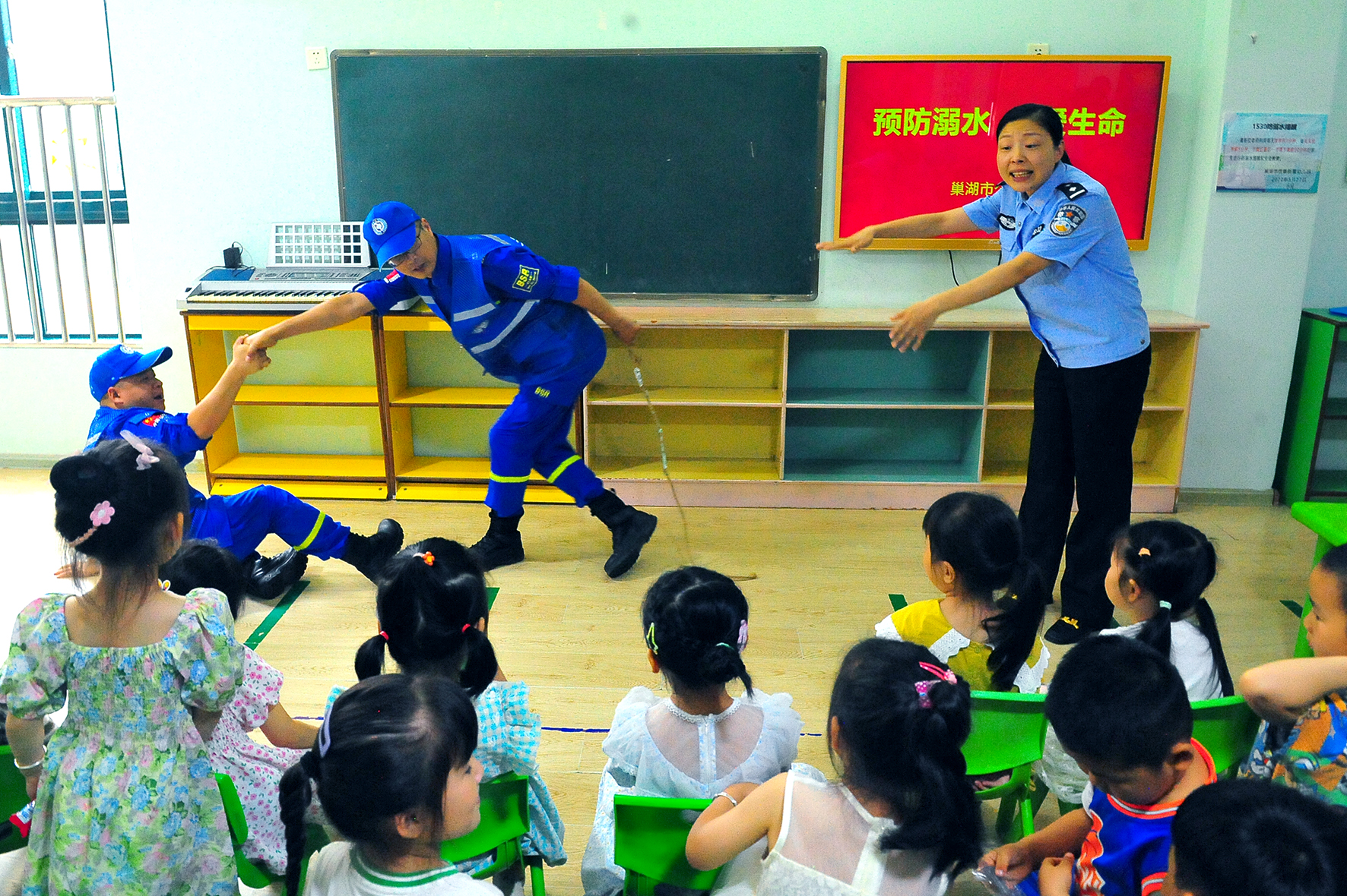 5月29日,安徽省巢湖市公安局臥牛派出所民警聯(lián)合藍(lán)天救援隊(duì)來(lái)到信泰幼兒園,為學(xué)生們宣講防溺水知識(shí)。