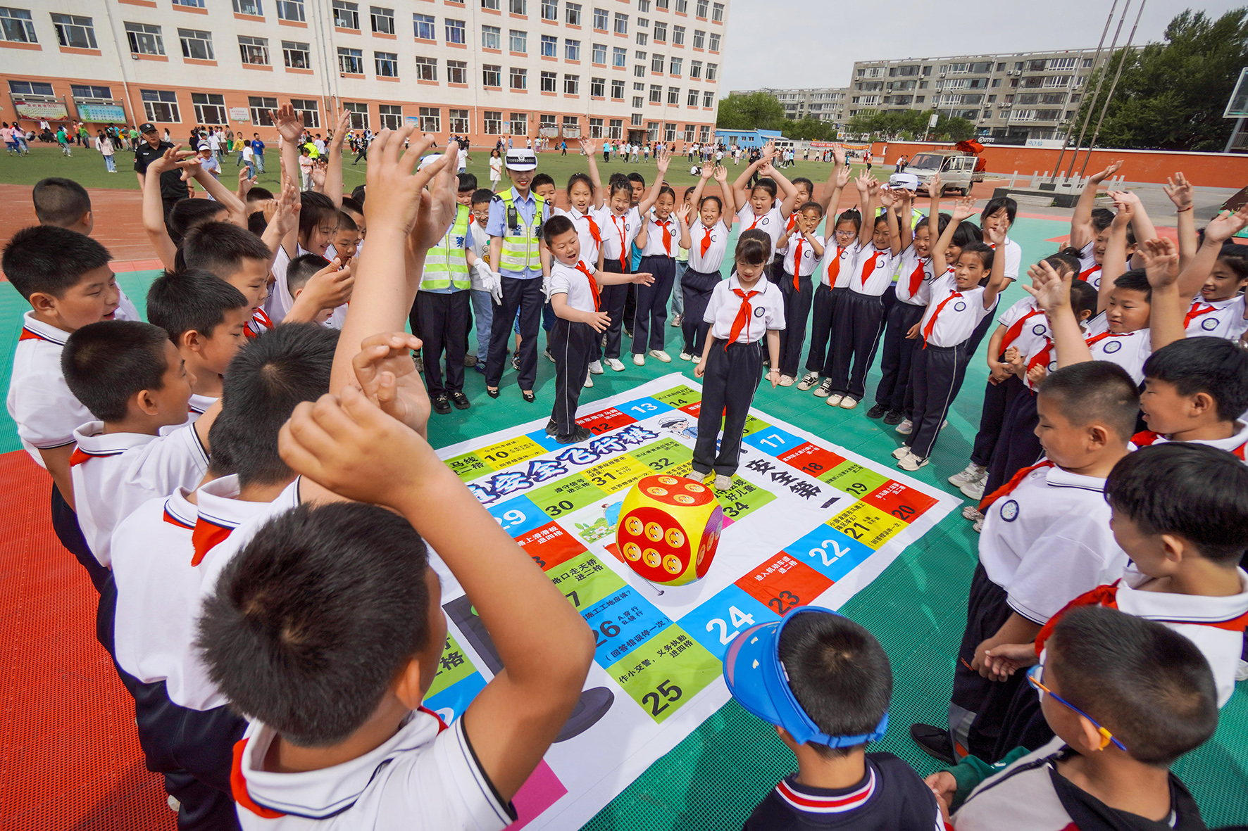 5月30日,遼寧省阜新市公安局交警支隊(duì)太平大隊(duì)民警來(lái)到轄區(qū)小學(xué)校,與同學(xué)們一起在互動(dòng)游戲中學(xué)習(xí)交通安全知識(shí)。