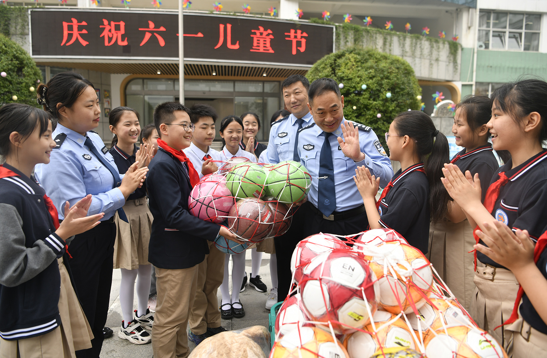 5月30日,浙江省臺(tái)州市路橋區(qū)螺洋派出所民警為上倪小學(xué)的同學(xué)們送去課外讀物、體育用品等節(jié)日禮物,并向同學(xué)們宣講夏季防溺水、防雷電知識(shí)。