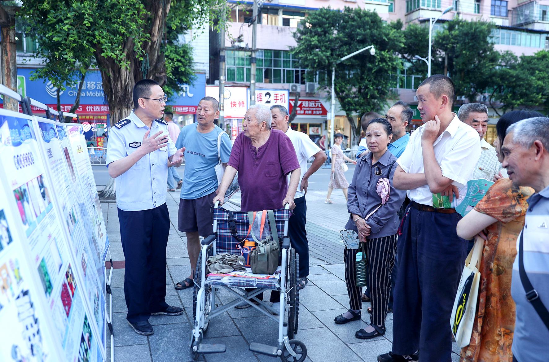 6月25日,四川省華鎣市公安局聯(lián)合團市委組織民警和青年志愿者,巡回到流動人員相對較多的廣場公園、街頭巷尾,宣傳禁毒知識及預(yù)防新型電信網(wǎng)絡(luò)詐騙知識。