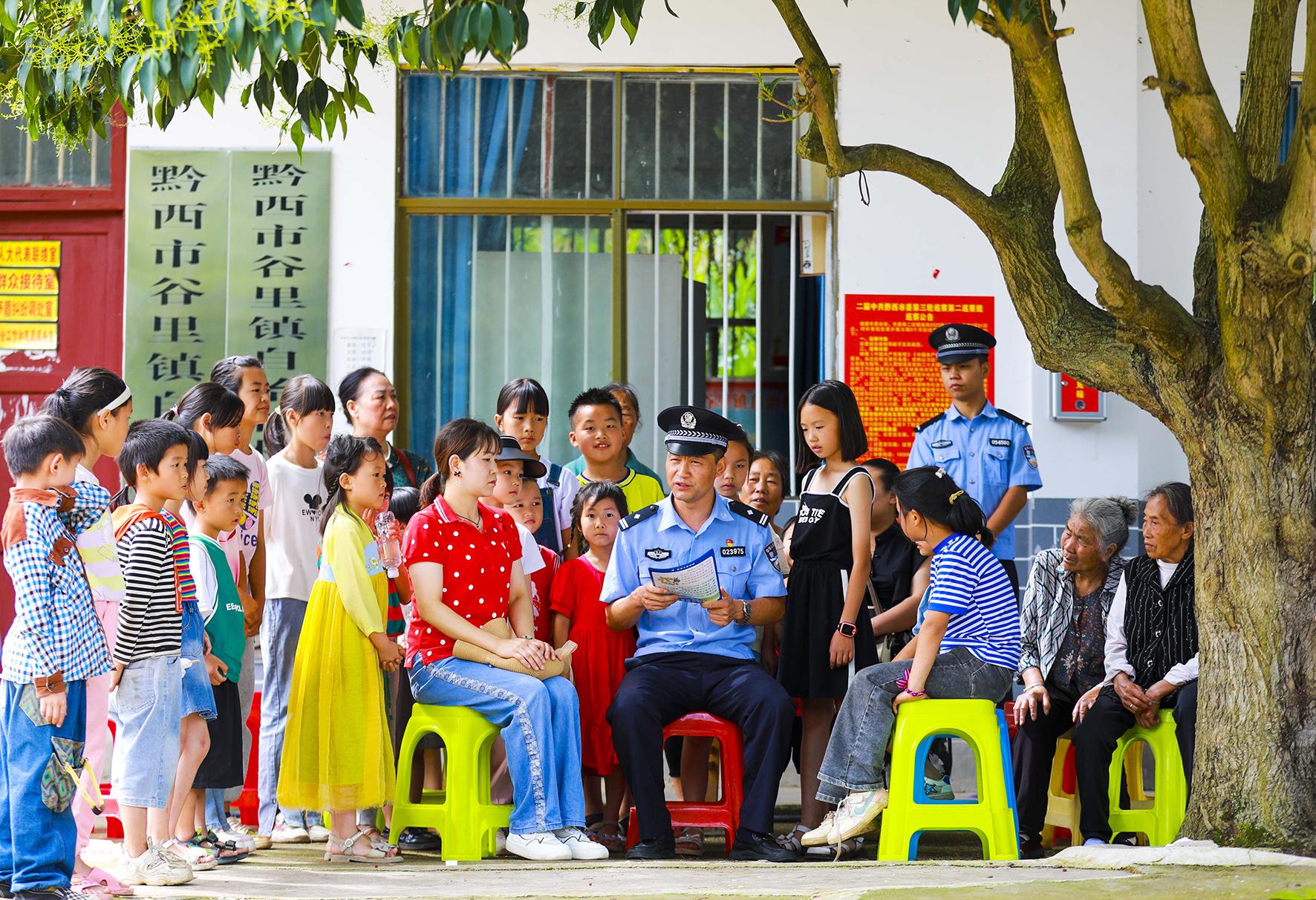 7月15日,貴州省黔西市公安局谷里派出所民警在谷里鎮(zhèn)自治村開展“法治宣傳進鄉(xiāng)村”活動,向山區(qū)群眾宣講預防養(yǎng)老詐騙、禁毒知識、防火、防盜等,提升群眾的安全防范意識。