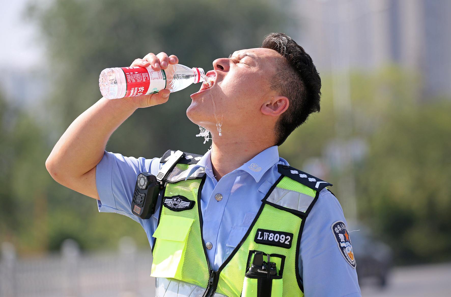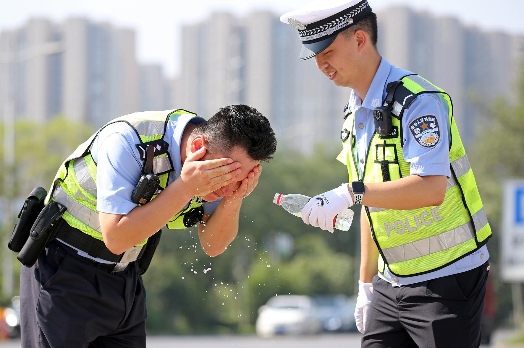 連日來(lái),持續(xù)出現(xiàn)高溫天氣。陜西省渭南市公安局交警支隊(duì)全體民輔警戰(zhàn)高溫斗酷暑,緊盯重點(diǎn)時(shí)段,嚴(yán)查各類重點(diǎn)違法,切實(shí)消除道路安全隱患,守護(hù)群眾出行平安。