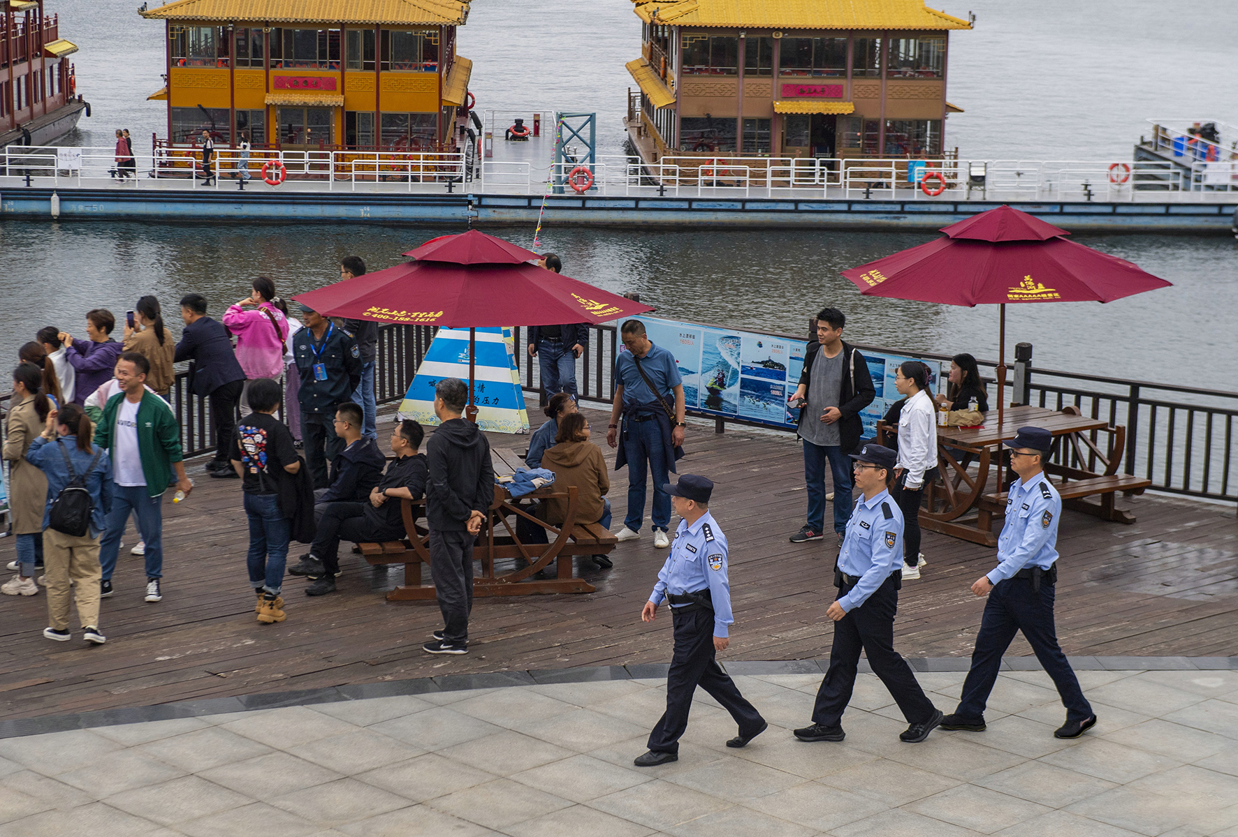 10月4日,安徽省舒城縣公安局旅游警察大隊民警在風(fēng)景秀麗的萬佛湖風(fēng)景區(qū)內(nèi)巡邏守護(hù)、為游客提供幫助。