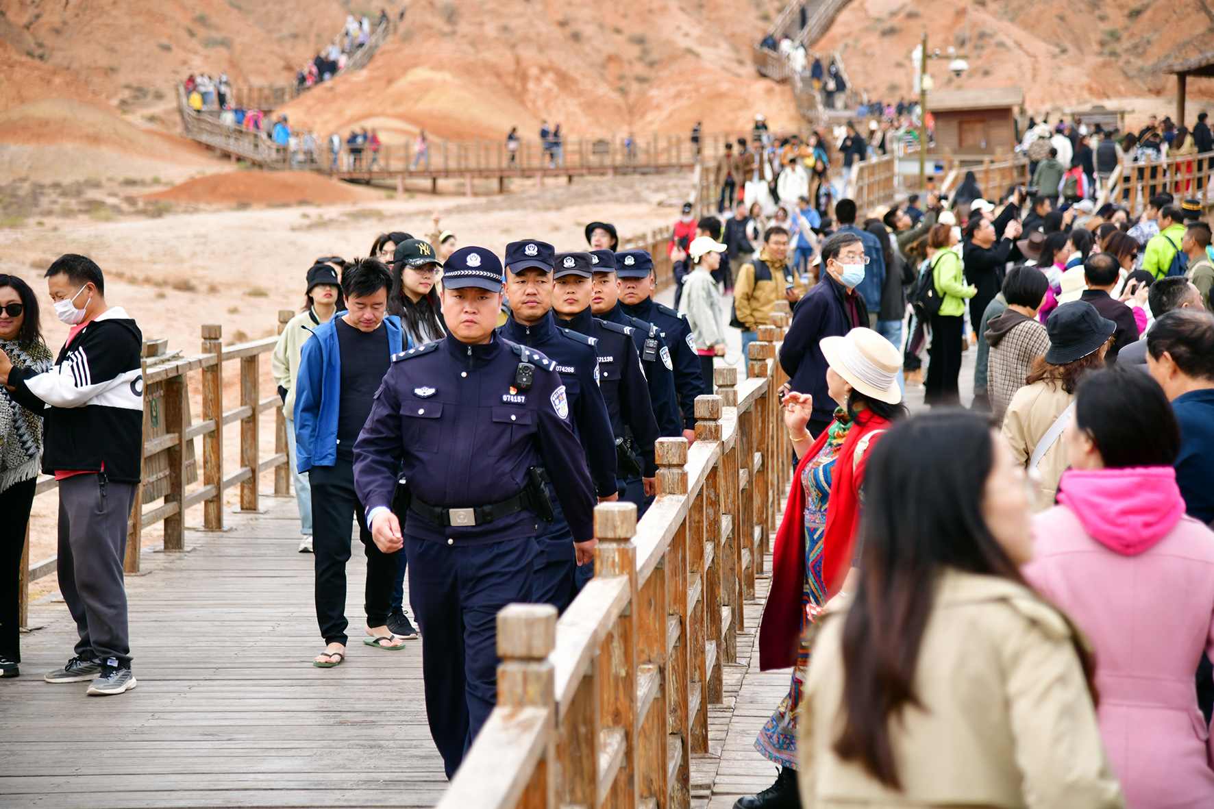 10月5日,甘肅省張掖市臨澤縣公安局丹霞景區(qū)派出所民警輔警加大景區(qū)內(nèi)執(zhí)勤巡邏力度,全力守護(hù)景區(qū)游客安全。