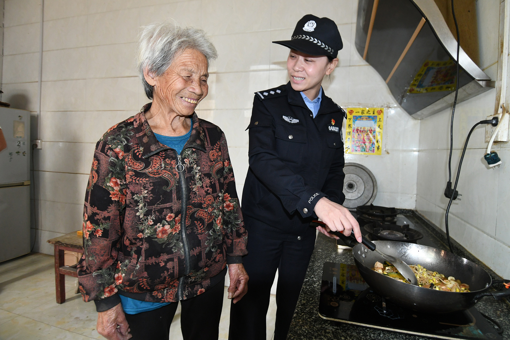 圖為12月19日,民警在余營村走訪76歲的獨(dú)居老人劉秀英。
