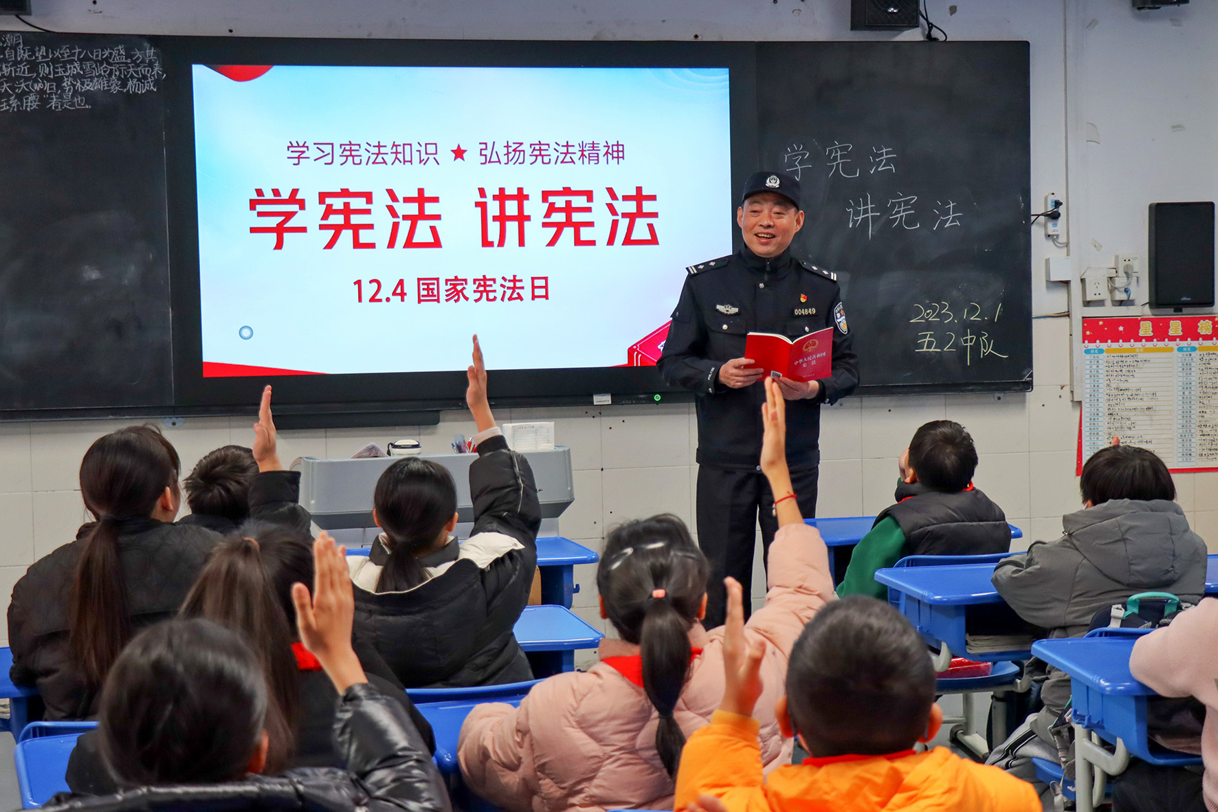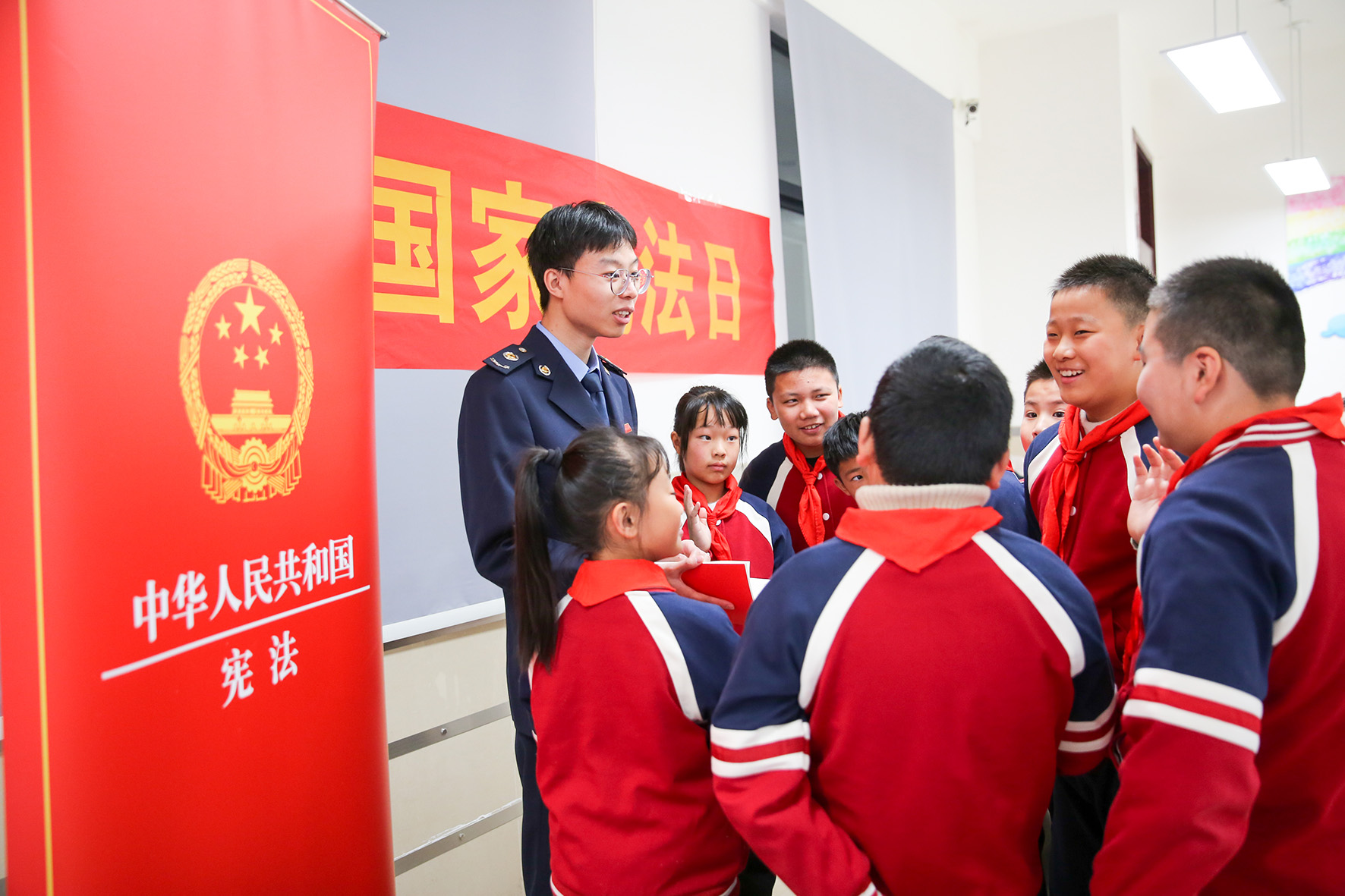 今年12月4日是第十個(gè)國(guó)家憲法日。12月1日,江蘇省如皋市人民檢察院、稅務(wù)局、如城街道普法志愿者走進(jìn)如城小學(xué),聯(lián)合開展“憲法知識(shí)進(jìn)校園”主題教育活動(dòng)。