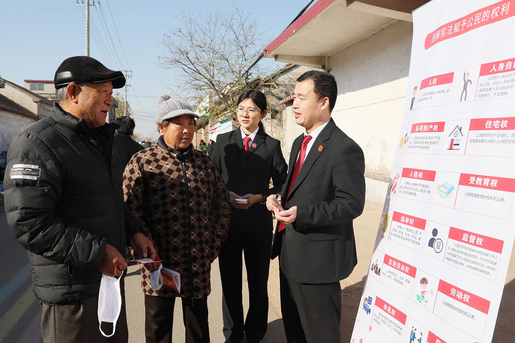 12月1日,山東省臨沭縣人民法院“沭法青穗”普法志愿服務(wù)隊(duì)利用趕集日,組織干警向群眾發(fā)放憲法宣傳手冊(cè),宣講憲法知識(shí)。