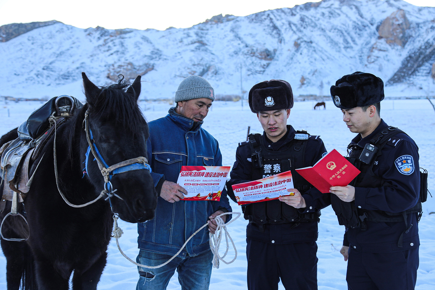 11月30日,新疆出入境邊防檢查總站阿勒泰邊境管理支隊(duì)阿熱勒邊境派出所民警深入邊境轄區(qū)開展“國(guó)家憲法日”宣傳活動(dòng)。