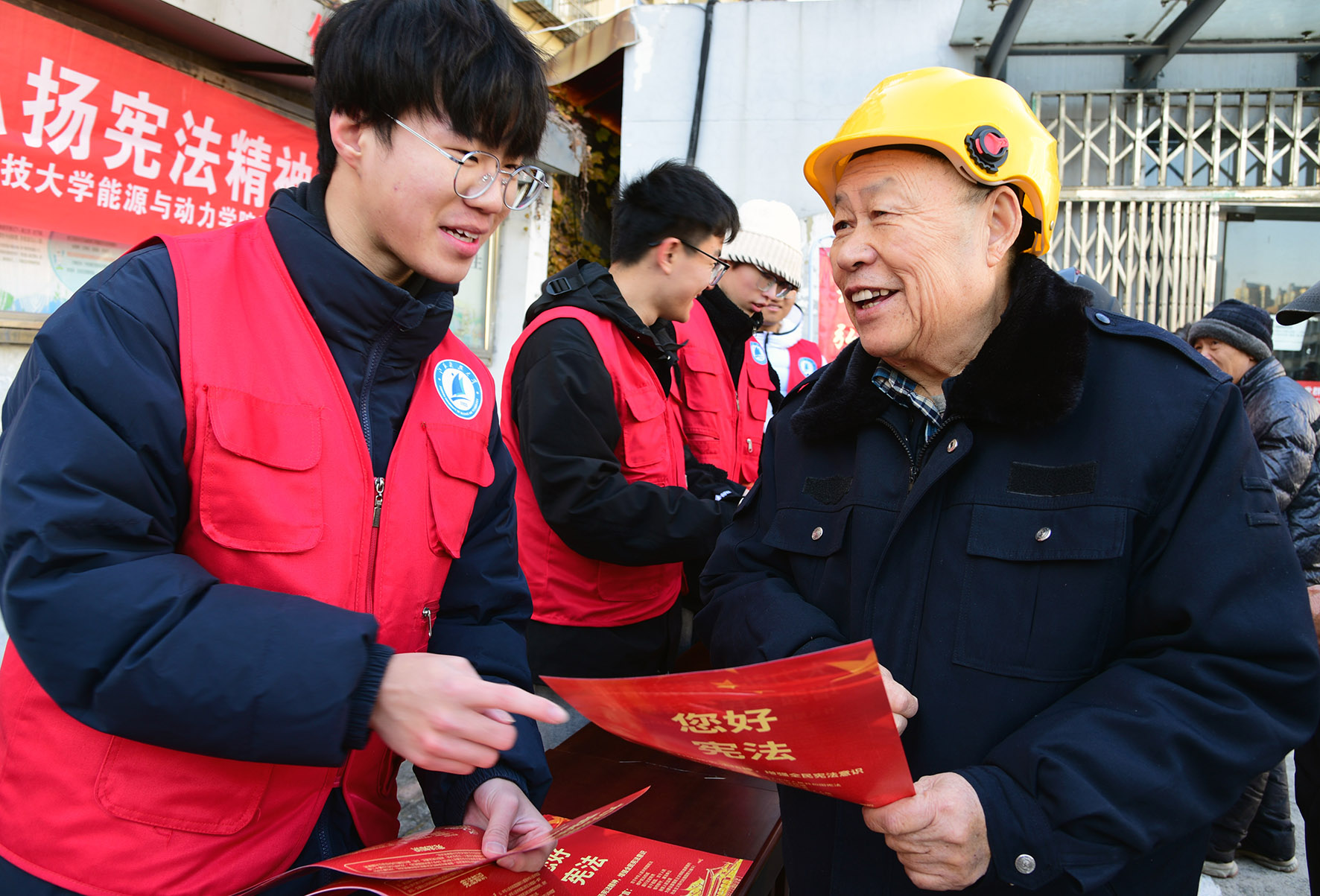 12月1日,在江蘇省鎮(zhèn)江市北府路社區(qū),江蘇科技大學(xué)志愿者向居民宣講憲法及相關(guān)的法律知識(shí)。