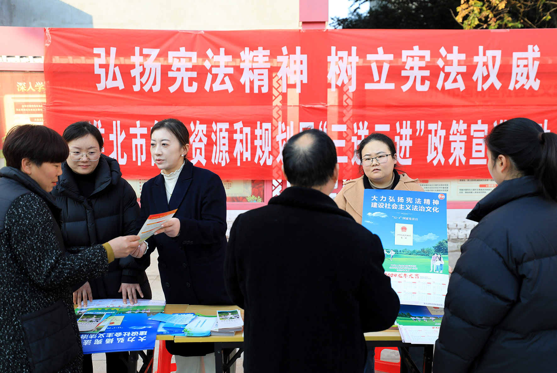 12月4日,安徽省淮北市自然資源和規(guī)劃局工作人員在代莊社區(qū)“國(guó)家憲法日”宣傳現(xiàn)場(chǎng),為群眾解答法律問題、提供法律咨詢。