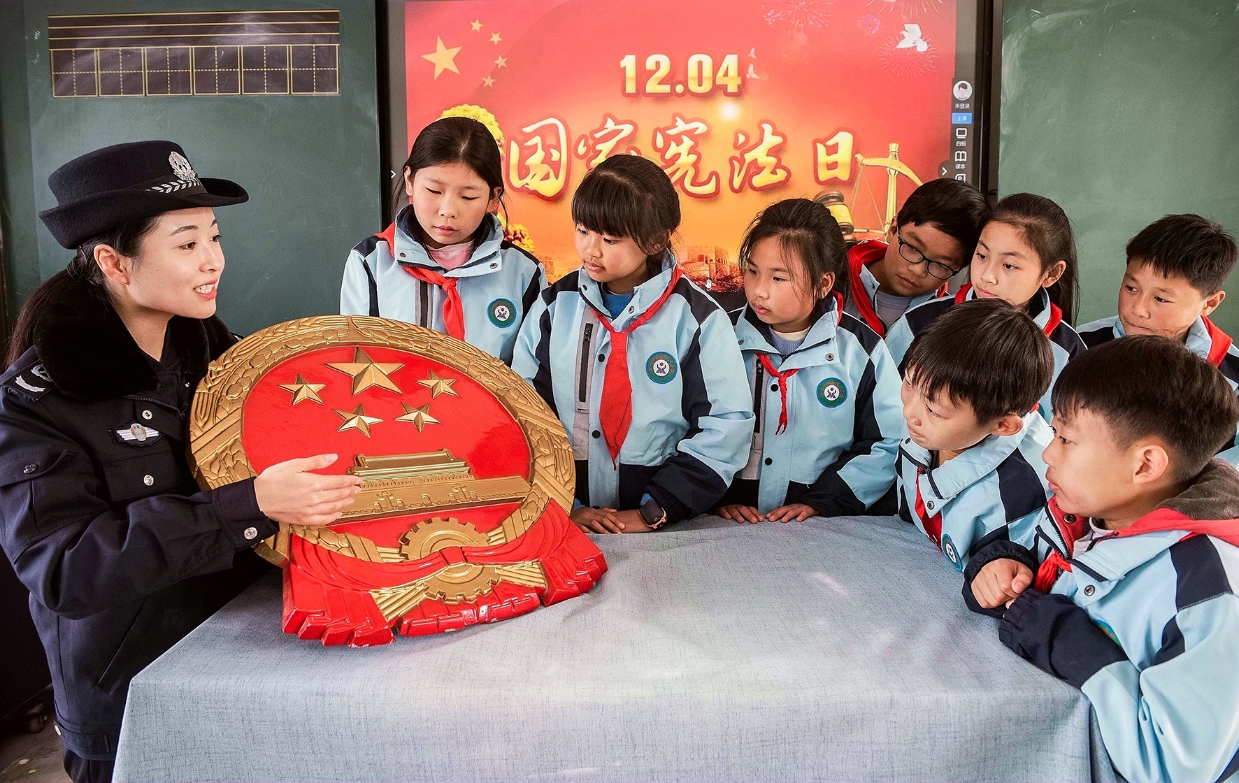 12月4日,山東省滕州市公安局北辛派出所民警為學(xué)生們講解憲法知識(shí)。