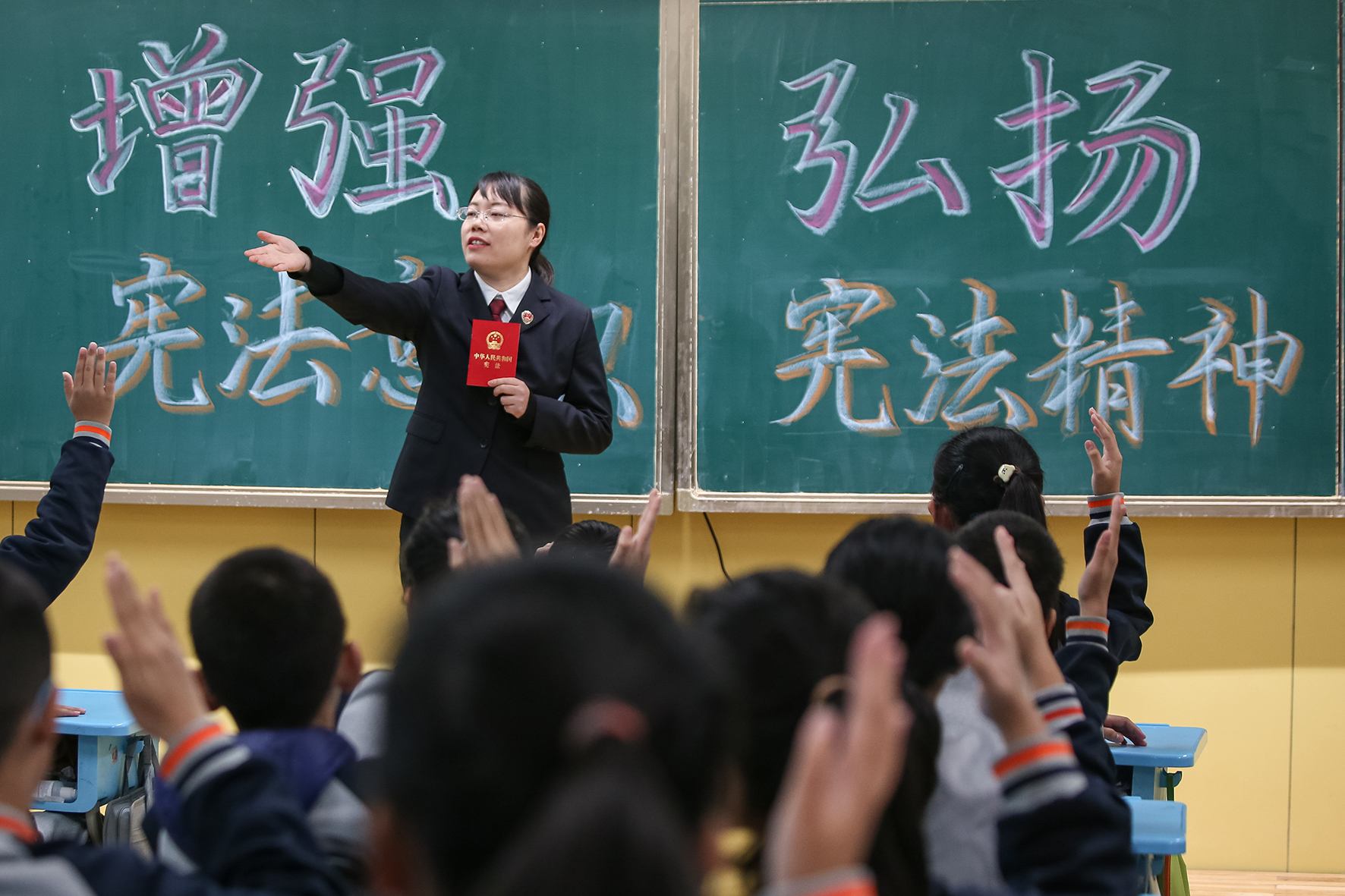 12月4日,安徽省含山縣司法局普法志愿者在姚廟中心學(xué)校向小學(xué)生宣講憲法知識(shí)。