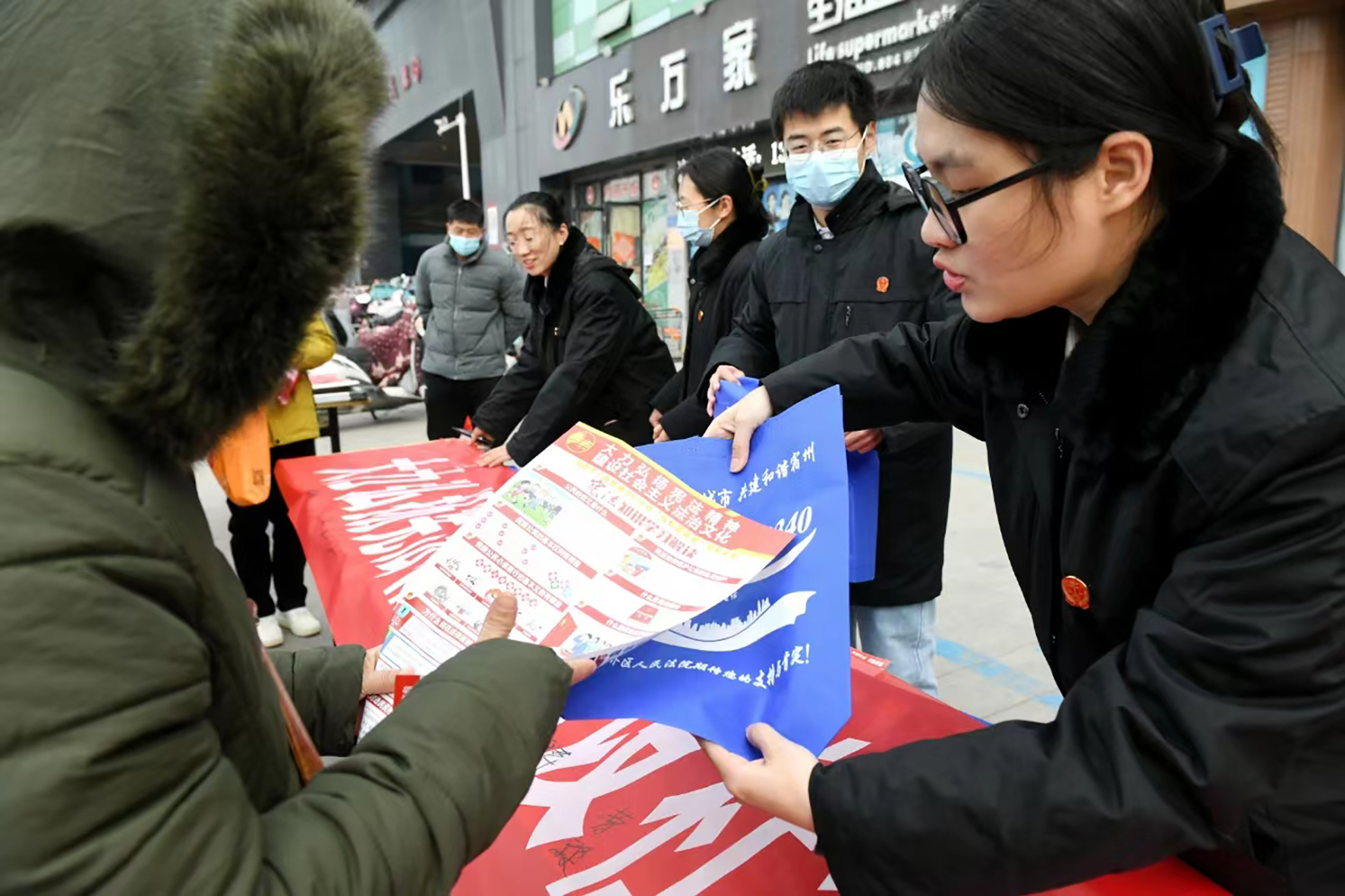 12月4日,安徽省宿州市埇橋區(qū)人民法院法官在街頭向市民講解憲法知識(shí)。