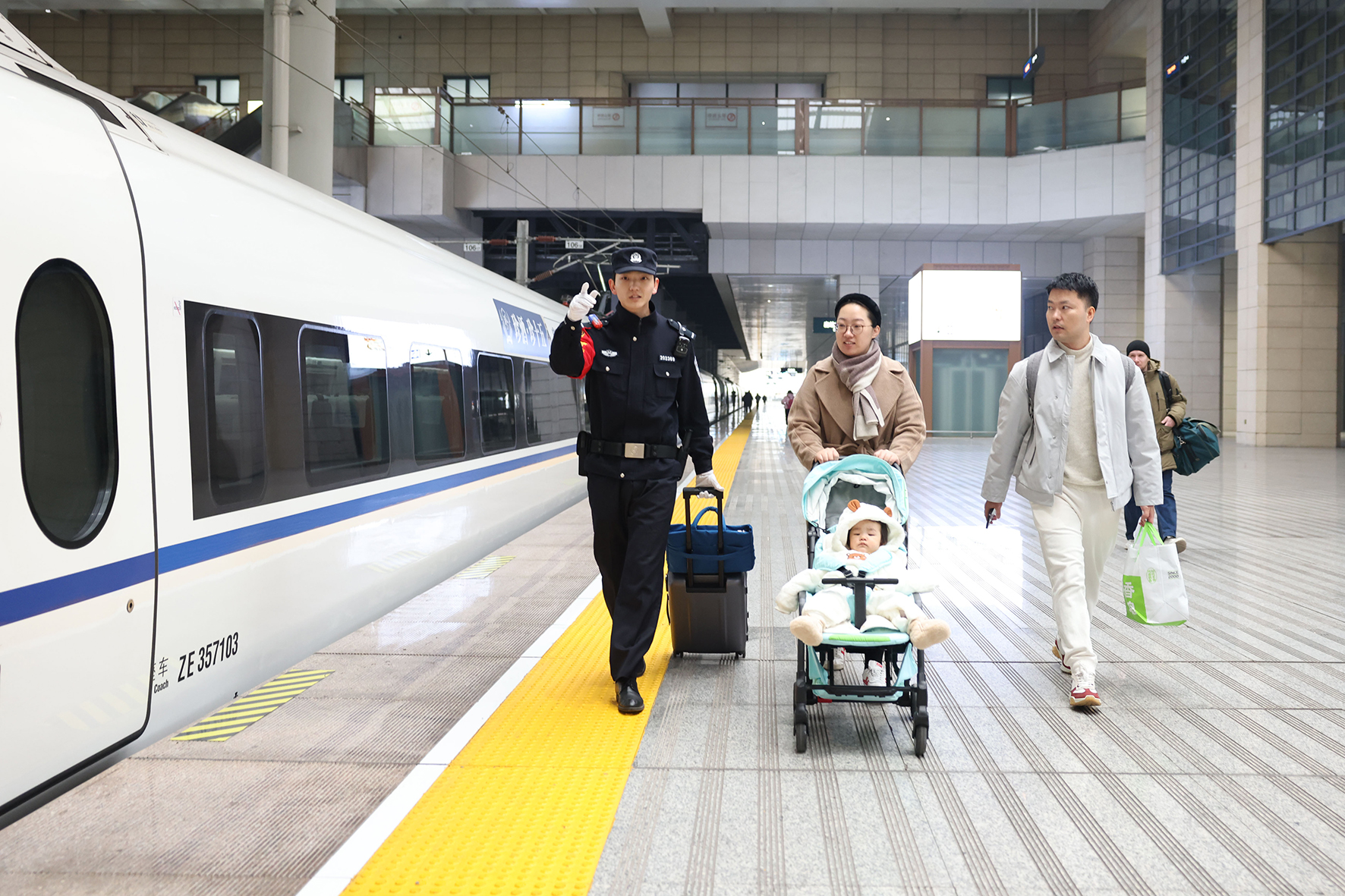 1月1日,西安站、西安北站迎來(lái)元旦小長(zhǎng)假返程客流高峰。西安鐵路公安局西安公安處在進(jìn)站口、候車室、站臺(tái)等客流密集部位增派警力,最大限度提升“見警率”“管事率”。
