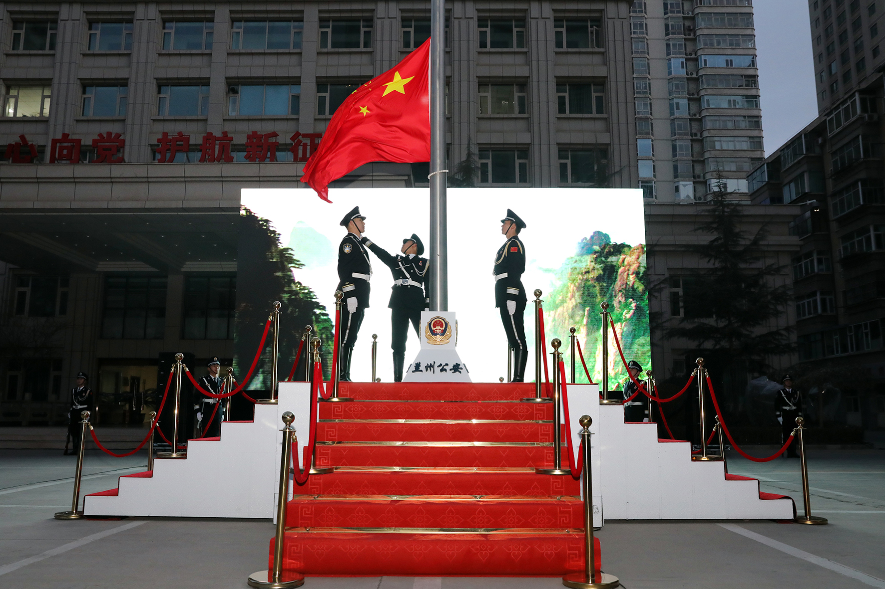 1月1日,甘肅省蘭州市公安局隆重舉行新年升國(guó)旗儀式。同時(shí),還進(jìn)行了新警授銜整裝儀式,為6名新警代表頒發(fā)授銜證書。