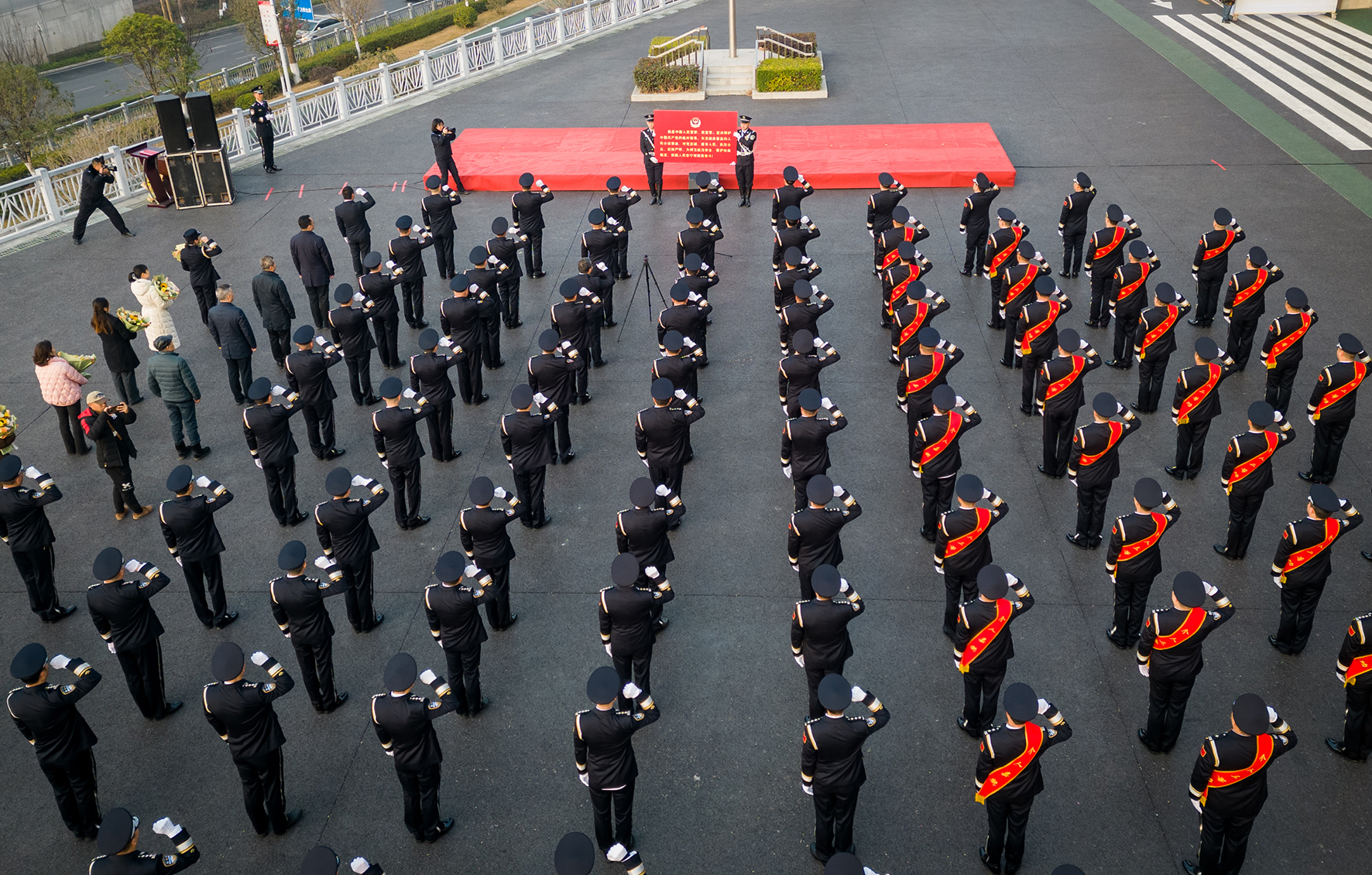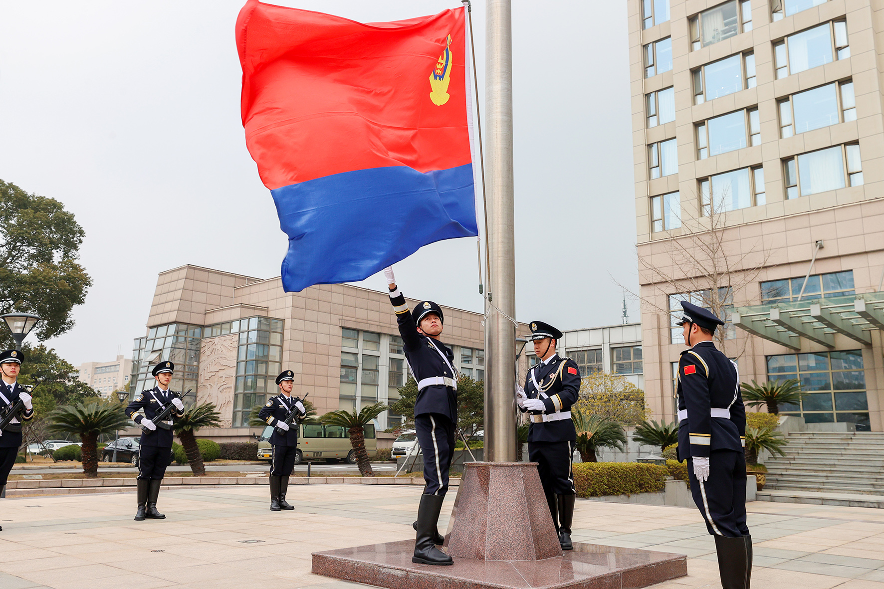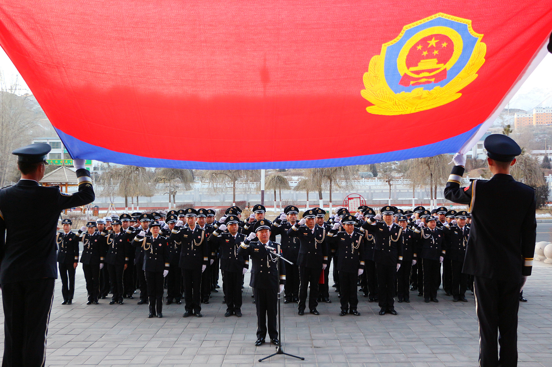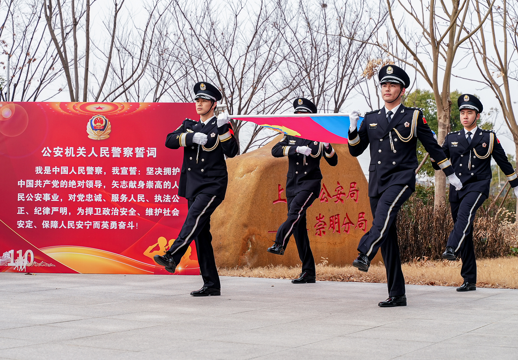 1月10日,上海市公安局崇明分局舉行了隆重的升警旗儀式。