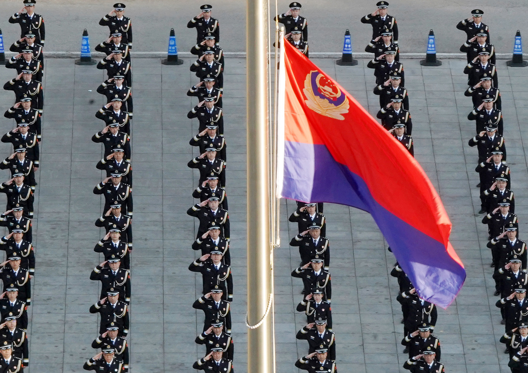 1月10日,山東省煙臺市公安局舉行升警旗儀式慶祝第四個中國人民警察節(jié),民警身著禮服向警旗敬禮,并重溫入警誓詞。