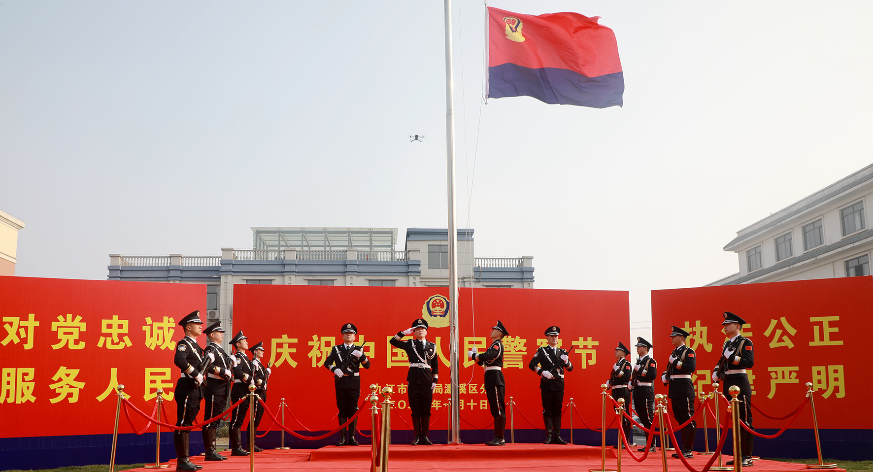 1月10,浙江省舟山市公安局舉行升警旗儀式,慶祝第四個中國人民警察節(jié)。