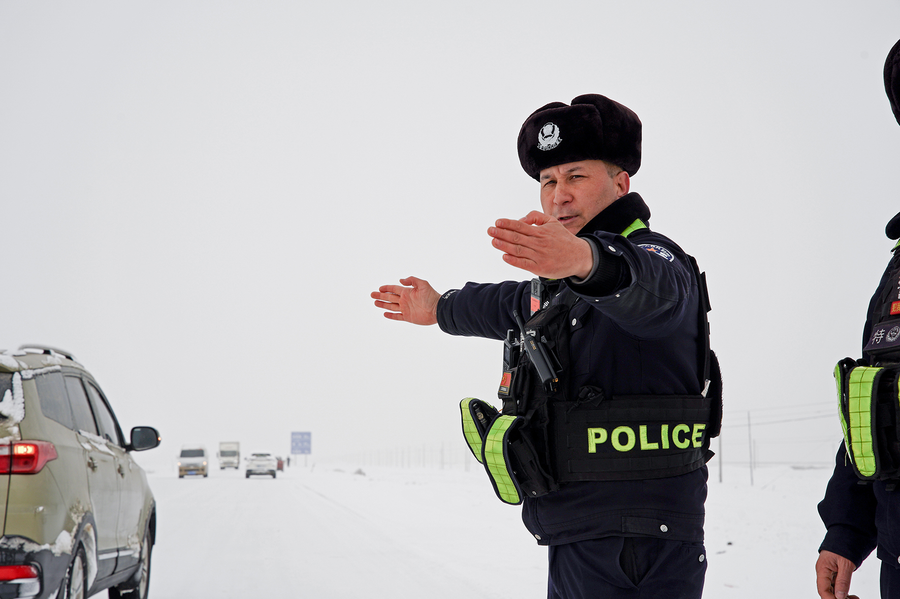 2月20日,新疆維吾爾自治區(qū)皮山縣境內(nèi)國道因大雪覆蓋通行受阻,皮山縣公安局組織警力對國道進(jìn)行巡查,保障車輛通行。