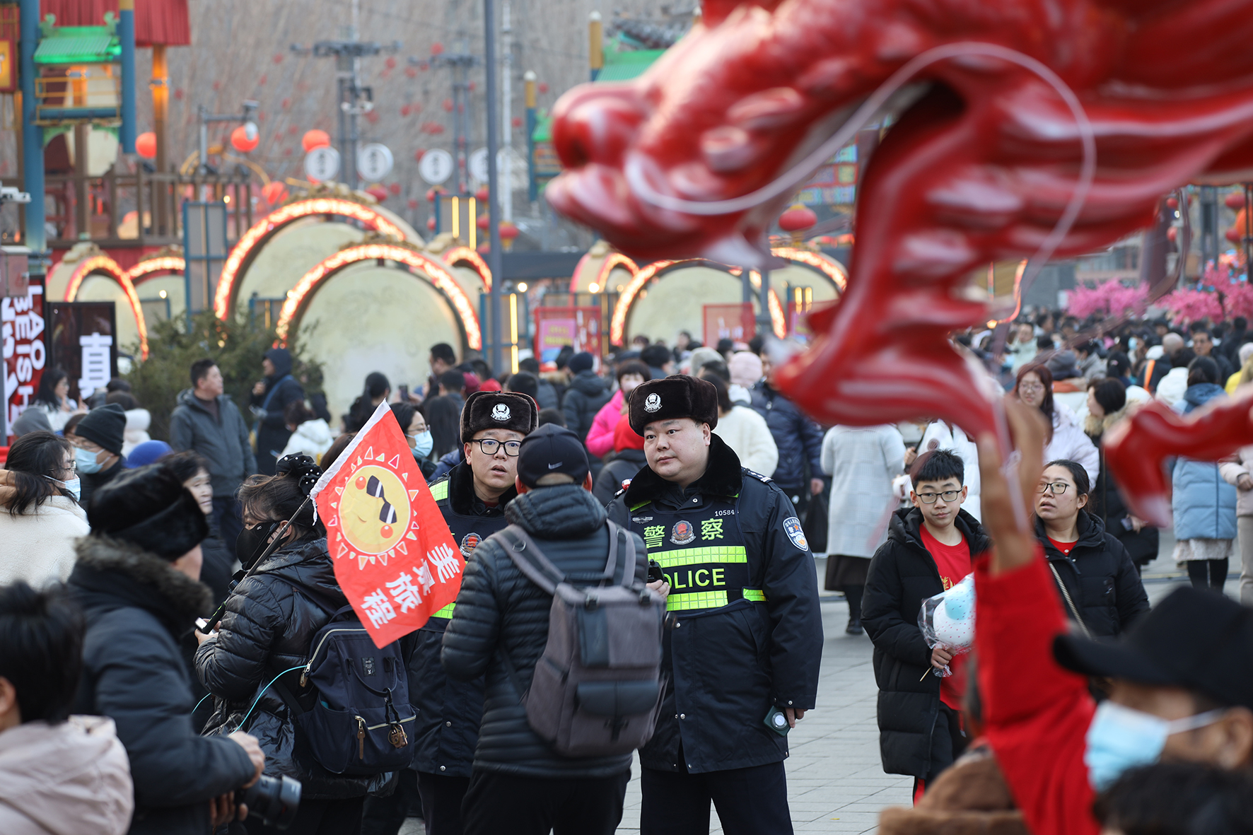 2月12日,遼寧省沈陽市北市場景區(qū)人頭攢動、熱鬧非凡。沈陽市公安局提前制定安保方案,科學部署警力,切實保障景區(qū)安全。