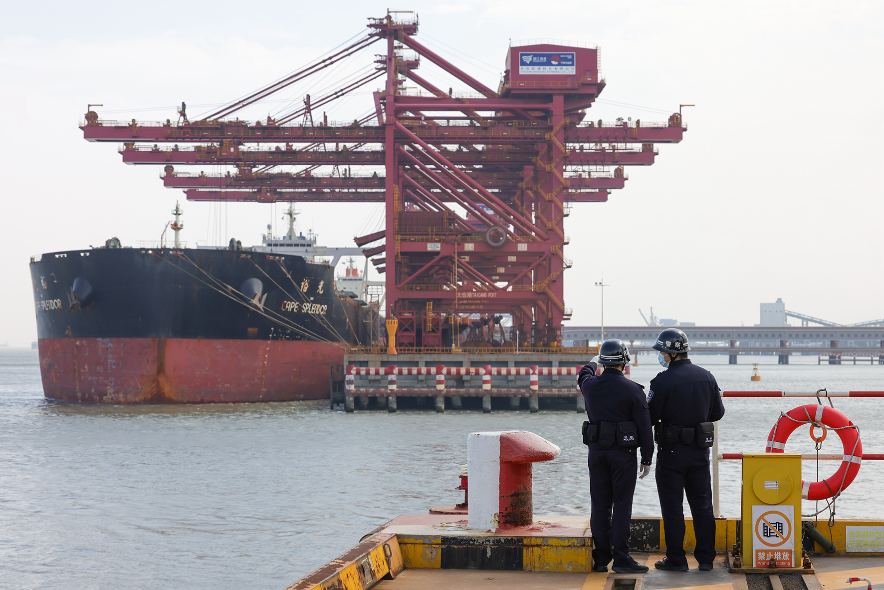 2月13日,江蘇太倉出入境邊防檢查站民警在口岸限定區(qū)域巡查。