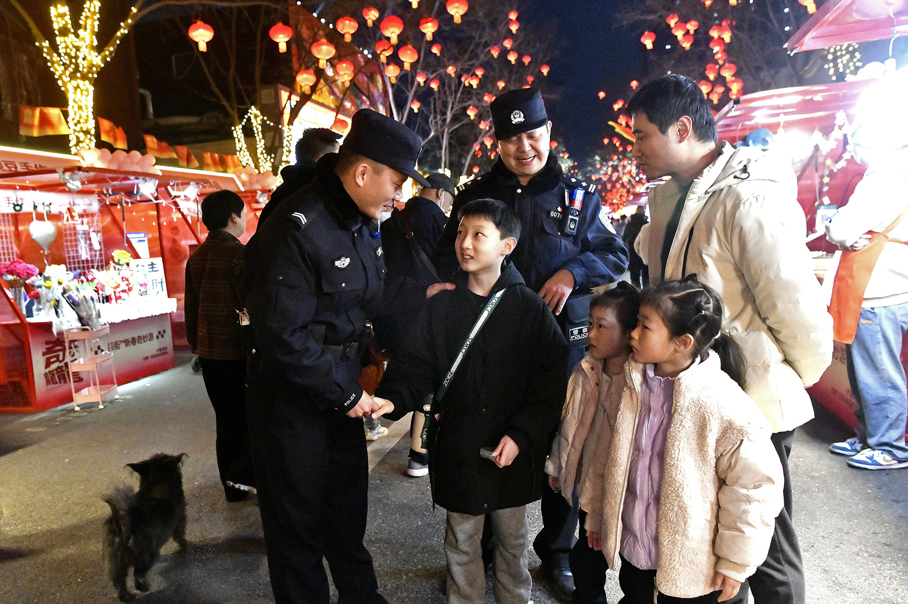 2月17日,河南省鄭州市公安局金水分局巡特警隊員堅守崗位,服務群眾。